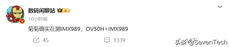 @数码闲聊站在微博上发了两条微博。第一条消息显示,华为已经开始为P70系列测试IMX989和OmnivisionOV50H传感器。
