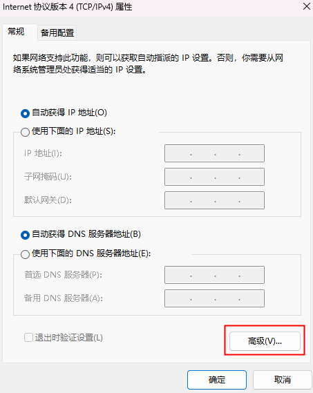 7、在打开的属性界面中,单击右下角的“高级”,然后输入。