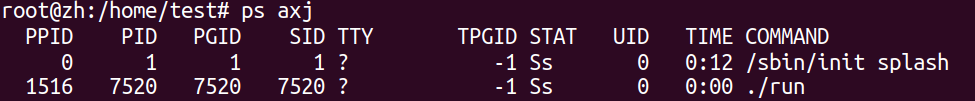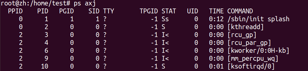 psaxja:显示所有x:显示没有控制终端的进程j:显示与作业有关的信息(显示的列):会话期ID(SID),进程组ID(PGID),控制终端(TT),终端进程组ID(TRGID)