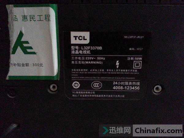 接修同行一台TCLL32F3370B液晶电视。