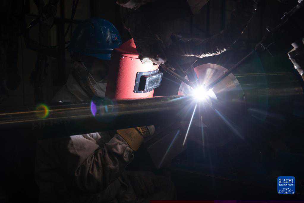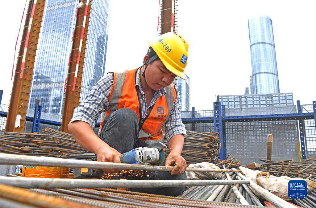 4月29日,工人在广西南宁市良庆区中建三局一公司南宁中银金融中心项目建设工地切割钢管。