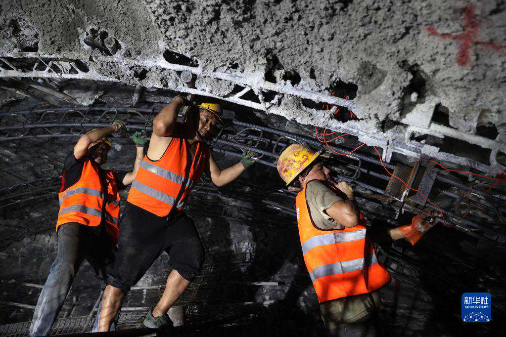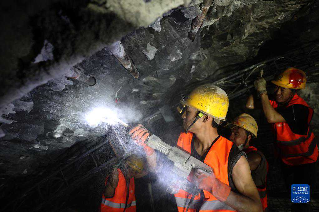 4月29日,中铁八局工人在渝湘高铁重庆黔江段姚家院子隧道施工。