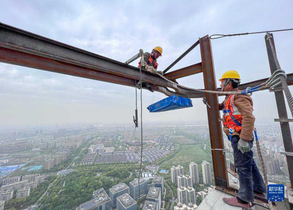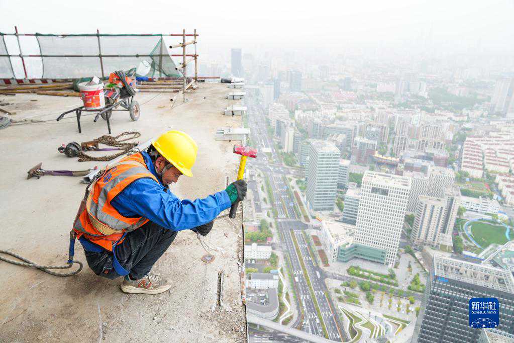 4月29日,工人在位于上海的中建三局一公司华东公司某建设工地施工。