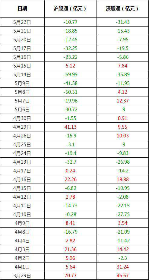 整个5月份,沪股通累计流出304亿,深股通累计流出113亿,合计417亿;