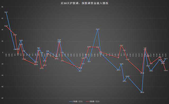 最近30个交易日,沪股通累计流出235亿,深股通累计流出135亿,合计370亿。