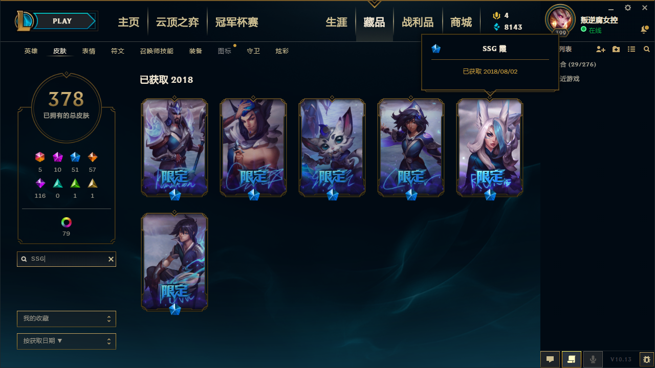 2018年8月2日,SSG冠军皮肤——571.2元RMB。