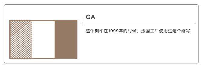 我们会看到一些内容里,比如西班牙和法国有一样的字母,这个在同一年份里是不可能的。如CA,这个缩写通常表示西班牙制造,在1999年的时候,它表示为法国制造,但是在1999年,西班牙就不会出现CA的制品。