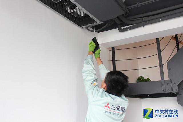 家用中央空调的概念介于家用分体式空调和商业中央空调二者之间,在构造方面的体现则是,一个室外机能够带动多个室内机,室内机能够直接吊顶隐藏,这样能够有效节省空间而且送风更均匀,我这位同事家中的室内机部分选择了吊顶,部分则直接裸露在外!可以说中央空调的室内机构造和家用分体式空调室内机的构造并无太大区别,只不过三菱重工的这款空调内置提升泵和水盘,能够及时的把冷凝水排出去!
