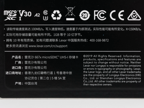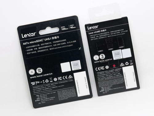 ▼包装背面延续雷克沙家族式的暗黑风,带防伪涂层与开口标识,其中667x右上角多一个写入速度(90MB/s)。