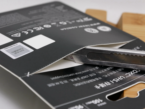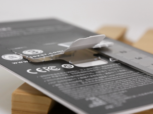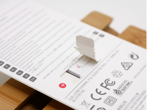 ▼有意思的是,读卡器同样采用易拆封设计,与nCARD和NM卡一脉相承,不过封条尺寸太小,撕开后还要掰开一块纸板才能取出读卡器。