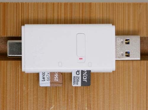 差点忘记介绍本期裁判……华为出品的二合一读卡器,型号为CF22R,支持microSD卡+NM卡,可双卡同时在线,支持Type-A/Type-C双接口,支持OTG,传输带宽100MB/s,华为商城售价99元,贵也没办法,全球唯一的NM读卡器!