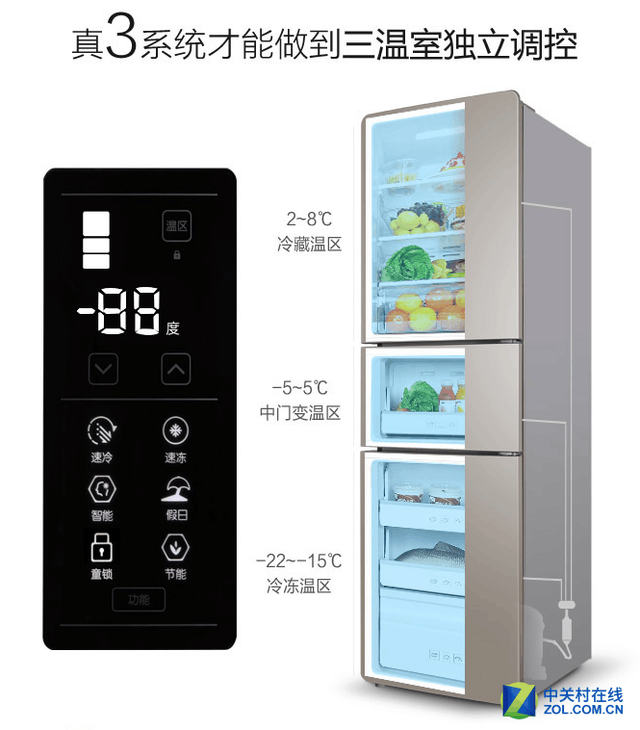 三温区独立三循环保鲜长久不串味