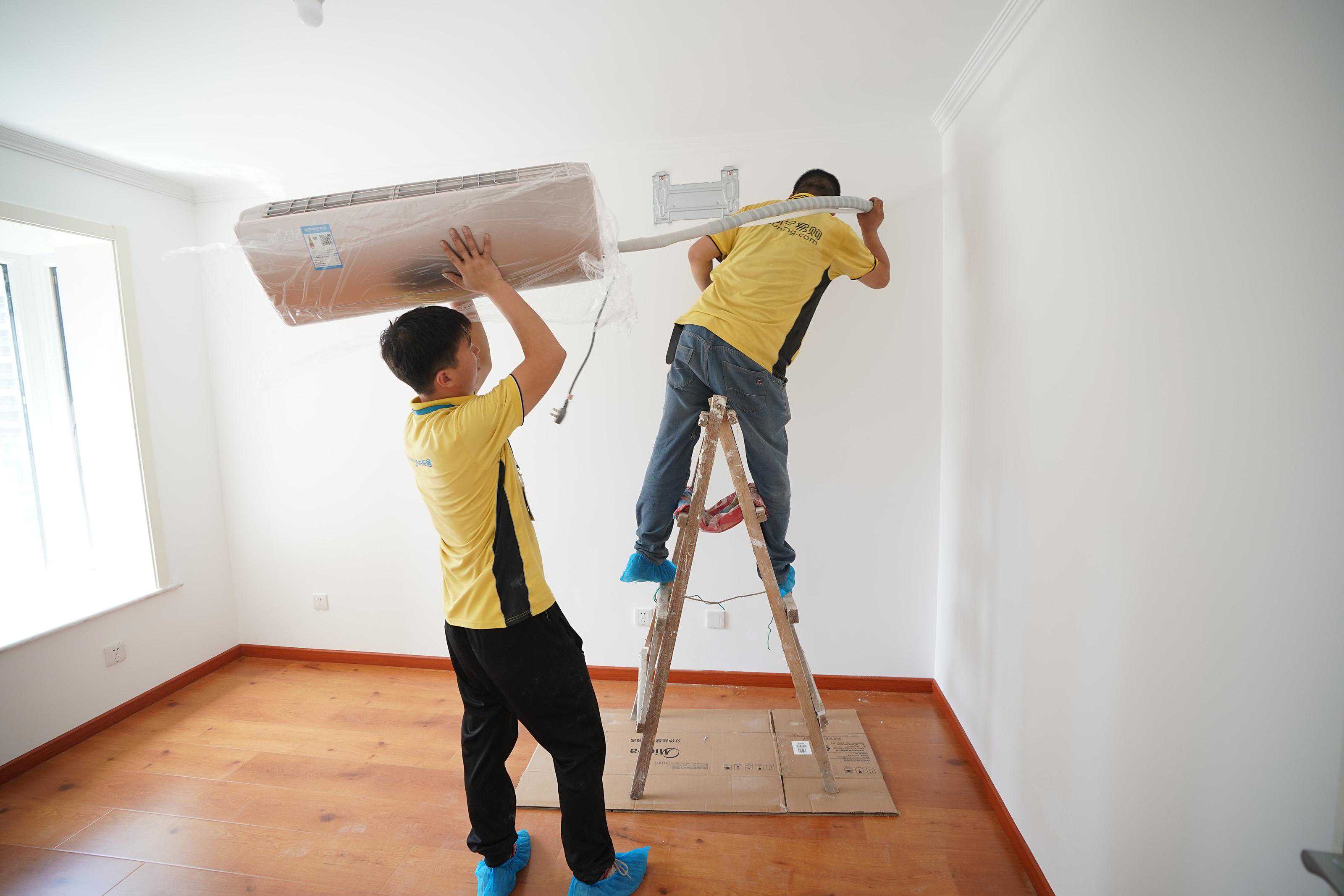 (2)较重空调要2个人一起抬。2人抬运时上下起落要同时;