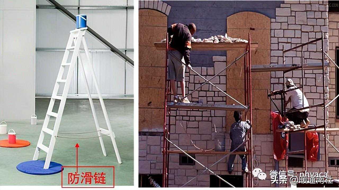 (3)在梯子上开墙孔时要注意墙壁后面的墙块掉落伤人;