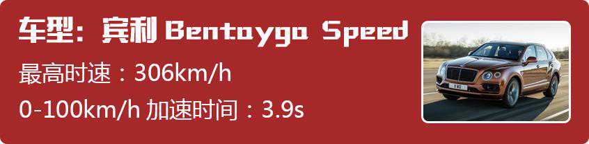 动力方面,搭载6.0LW12双涡轮增压发动机的标准版车型就已经很快了,4.1s的0-100km/h加速成绩,301km/h的极速足以让一众性能车闻风丧胆。但是宾利并不满足于此,于是推出了更快的添越Speed,该车同样搭载6.0LW12双涡轮增压发动机,但是可以爆发出635Ps的最大功率(普通版最大功率608Ps),峰值扭矩则达到了900Nm,0-100km/h加速成绩提高到3.9s,极速更是达到了306km/h。