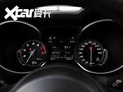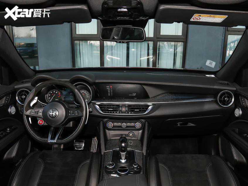 和外观比起来StelvioQuadrifoglio的内饰就显得比较普通了,整体造型说不上出彩,只能说是“没毛病”。不过内饰用料还是很下本的,大量使用了碳纤维饰板和Alcantara材质。值得一提的是,StelvioQuadrifoglio将无钥匙启动按键安装在了方向盘上,并用醒目的红色装饰,方向盘后面还有两片巨大的金属材质换挡拨片,这也让朴素的内饰瞬间充满战斗气息。
