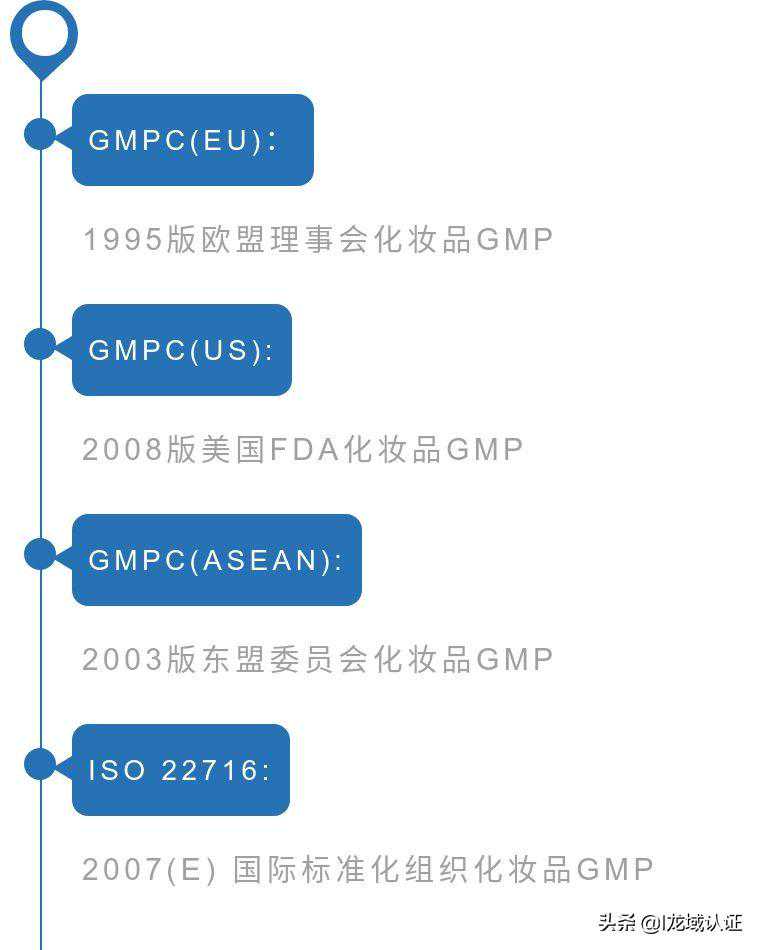 根据目前已有的化妆品监管制度,因出口至不同的国家和地区,需要满足销售目的地的化妆品GMP要求,具体有以下几种: