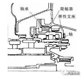 在大多数弹性支座中,将限幅环的限幅间隙中通以滑油并在两端加以封严形成挤压油膜,这样,使限幅环起到了两个作用,使发动机振动可以降低更多。这种带挤压油膜的弹性支座不仅可以改变转子支承刚性,使转子变为柔性转子,而且还可利用挤压油膜来减小外传的振动,因而被大多数发动机采用。