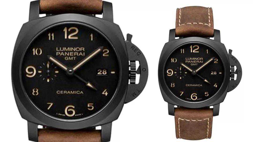 这款带点骚气的沛纳海很适合程序猿们呐,打破呆板沉闷,兼具时尚与粗犷。表款设计灵感取材于第二次世界大战的军用腕表。夜光数字刻度在纯黑表盘异常醒目,6、9、12被放大,整个刻度圈呈现闪烁效果。9点方向的小盘承担双时区功能,与之对应的3点方向则是日历显示。