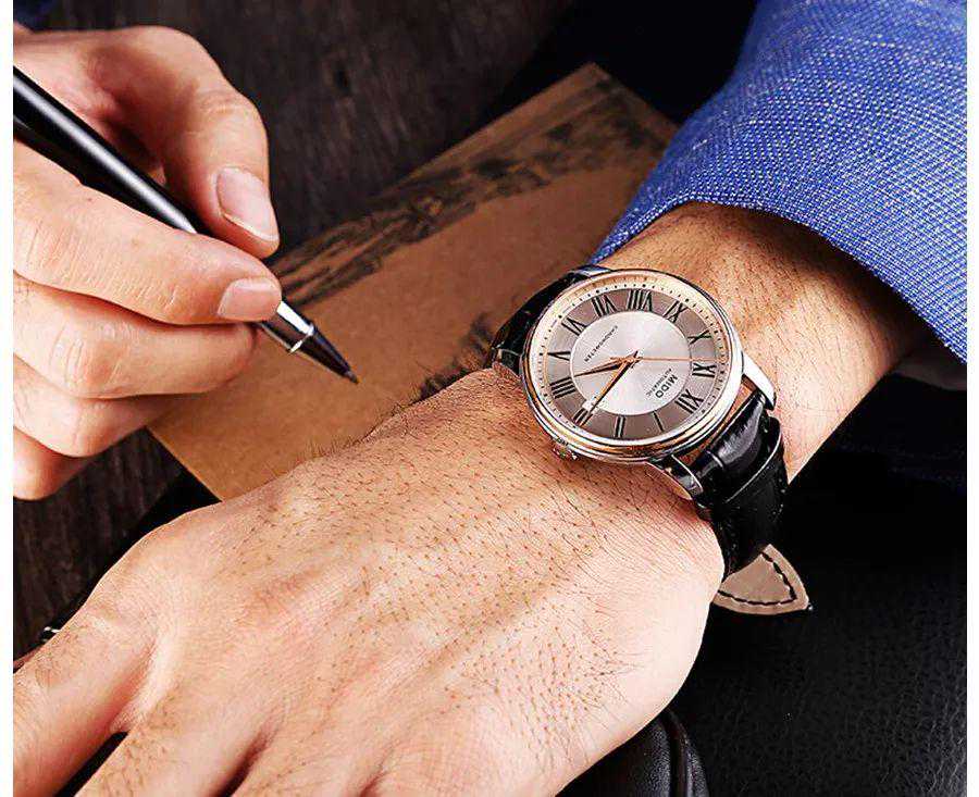 这款美度就恰到好处,流漏出亲切感。18K金包裹表壳,依靠颜色及刻度设计把表盘分成层次分明的三层。罗马数字刻度增加古典气质,3点方向搭载日历透窗。腕间不经意露出,朋友追问价格,不贵,就1万多而已。