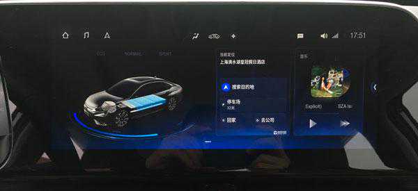 在系统方面,AionS采用了TSUX悬浮式双联屏幕的配置。车机娱乐系统屏幕和方向盘背后的数字仪表盘,都采用了12.3寸尺寸,1920x720分辨率的规格。在数字仪表盘上,驾驶者可以统览绝大部分重要的行车信息,并拥有三种主题模式(经济、普通和运动),同时还能实现从车机显示屏上联动多媒体信息和导航地图的投屏功能。