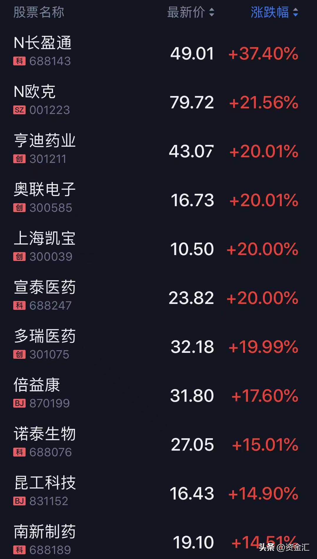 涨幅榜
