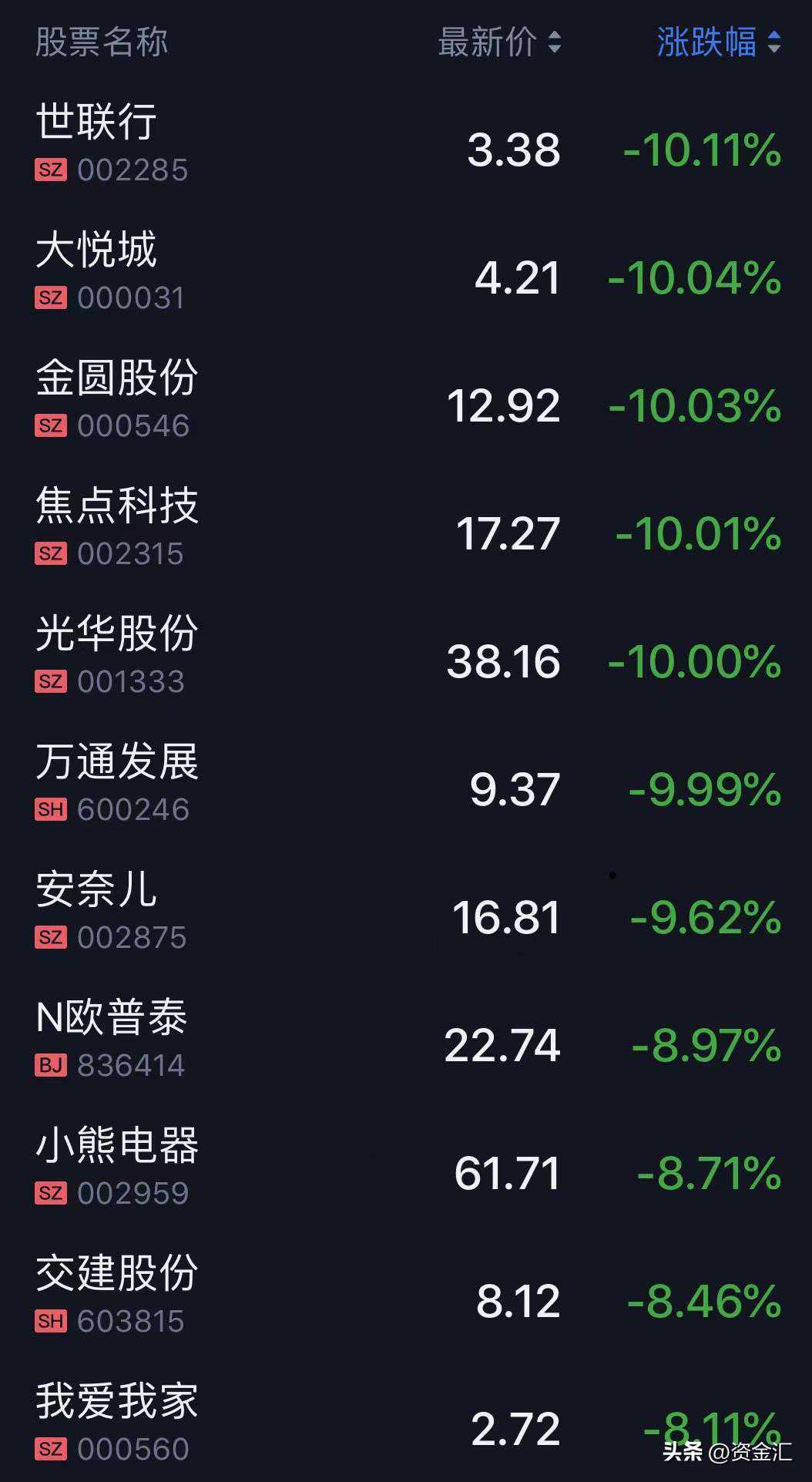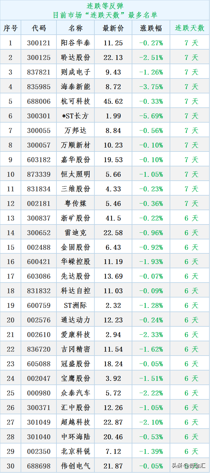 连跌榜