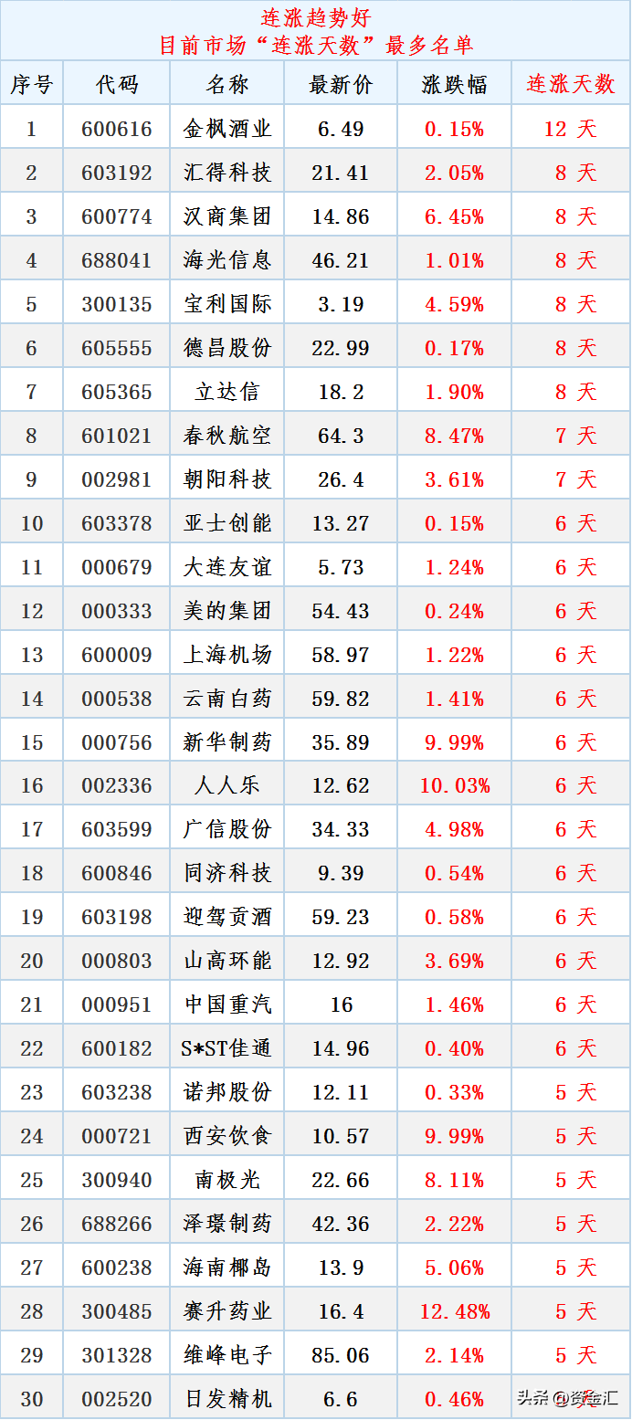 连涨榜