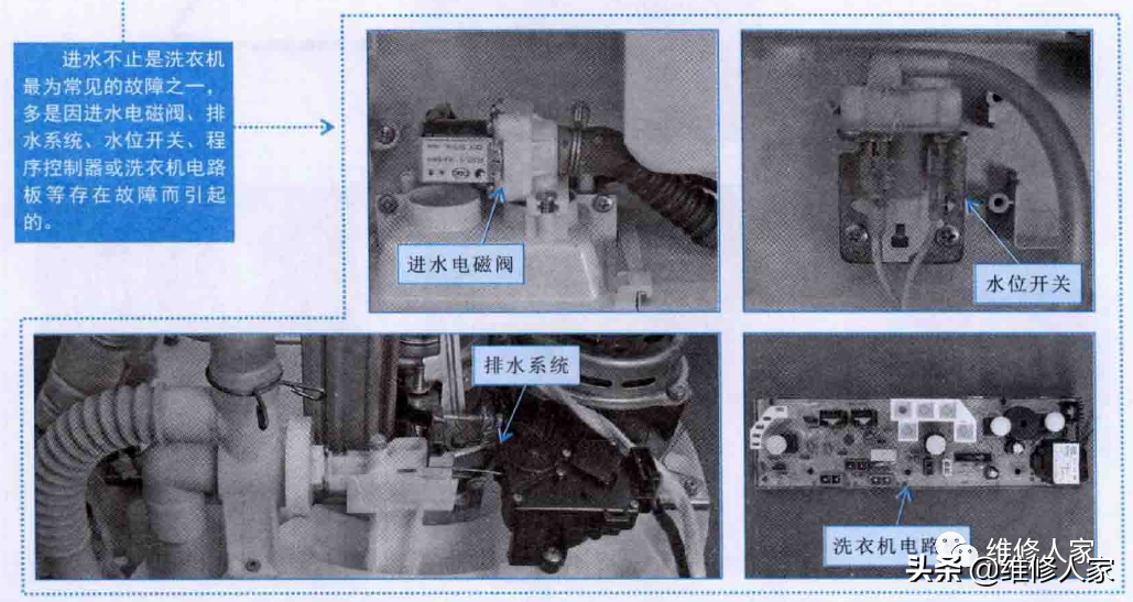 2、洗衣机进水不止的故障特点