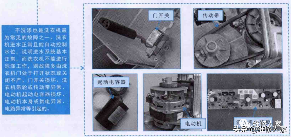 1、洗衣机不洗涤的故障特点