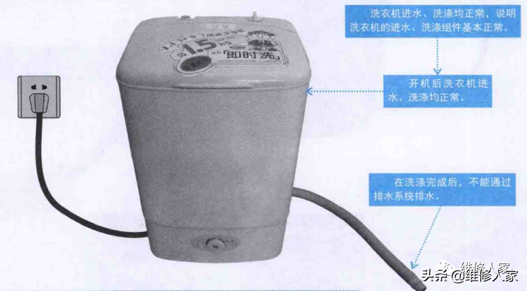 1、洗衣机不排水的故障特点