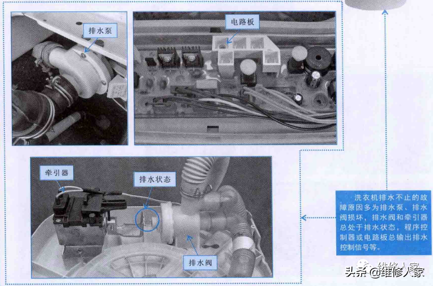 2、洗衣机排水不止的故障特点