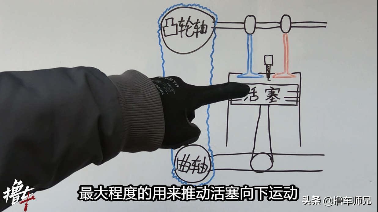 在活塞被推到底之后,排气门打开,让废气可以排出去,然后进气门再打开,让新的混合气体进到缸内,最后活塞再向上运动挤压混合气体,那么气门的关闭和打开动作,就需要在正确的时间里和活塞的上下动作完美配合;