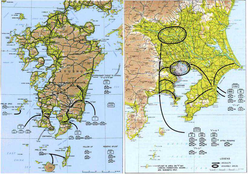 ■"奥林匹克"行动(左)和"冠冕"行动(右)的作战计划。