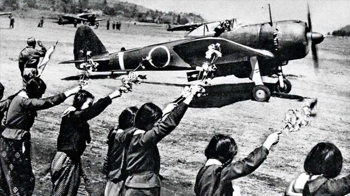 ■太平洋战争末期,日本女学生挥舞花束欢送特攻队员驾机出击,日本人的狂热是美军作战面临的最大难题。