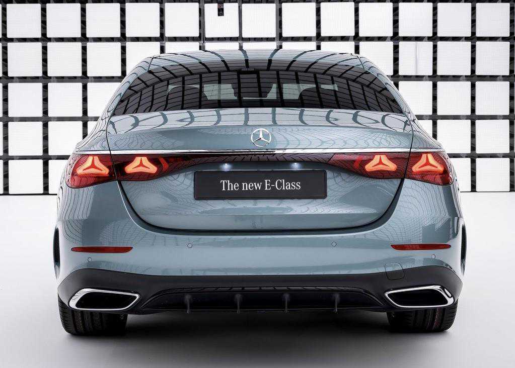 车尾部分,全新E级看上去比上一代车型更为圆润、低趴,更宽的后轮拱、双边单出排气和底部的扩散器,都为新车增添了更多的运动气息。