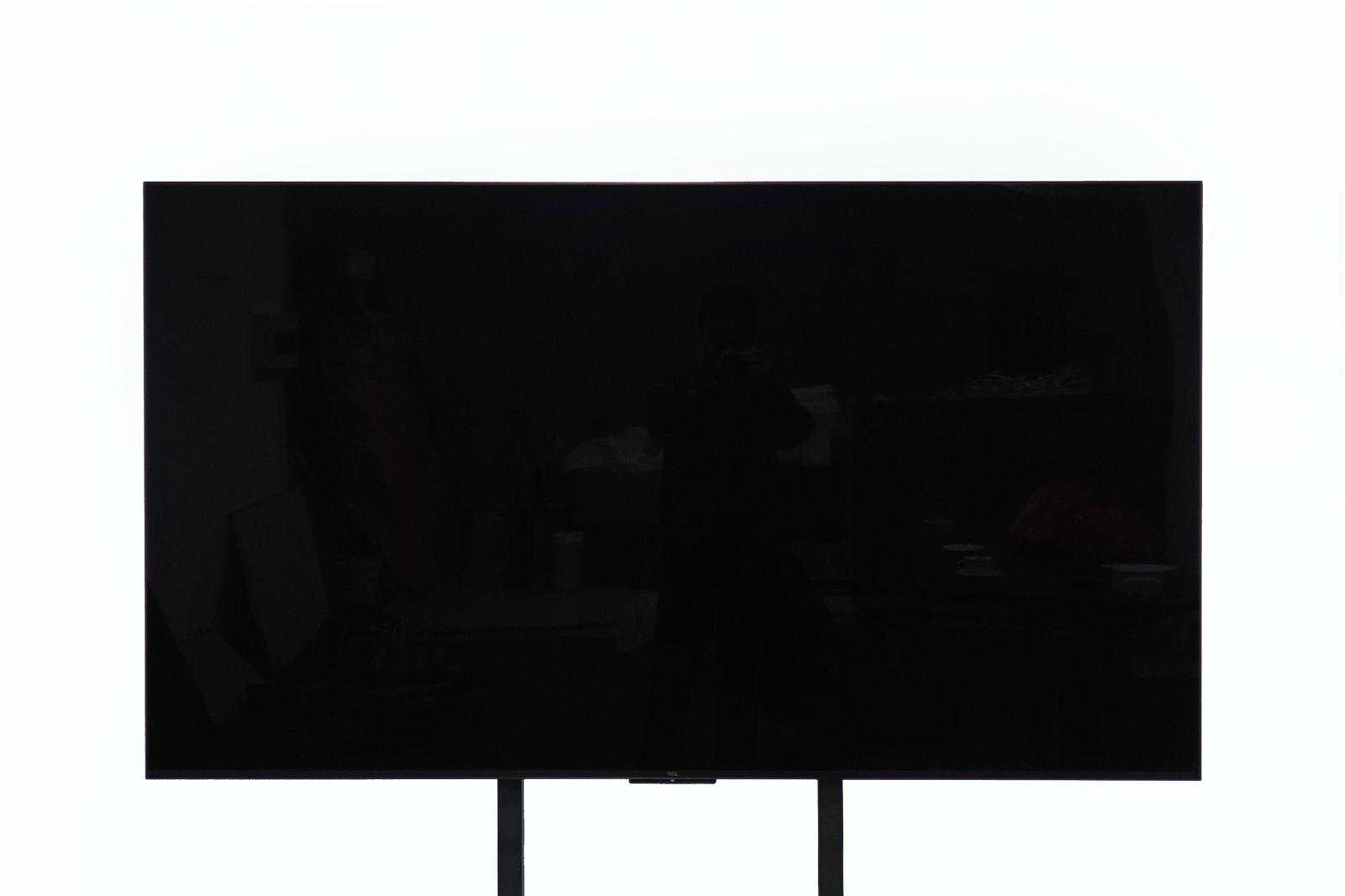 按照惯例,先来看一下这台TCLQ10H电视的外观。上文已经说了,因为是在会议室中使用,所以采用了移动支架挂装。如果大家有条件的话还是建议采用壁挂安装,TCLQ10H电视可以做到无缝贴墙挂装,再加上电视的厚度控制非常棒,视觉效果会更出众。