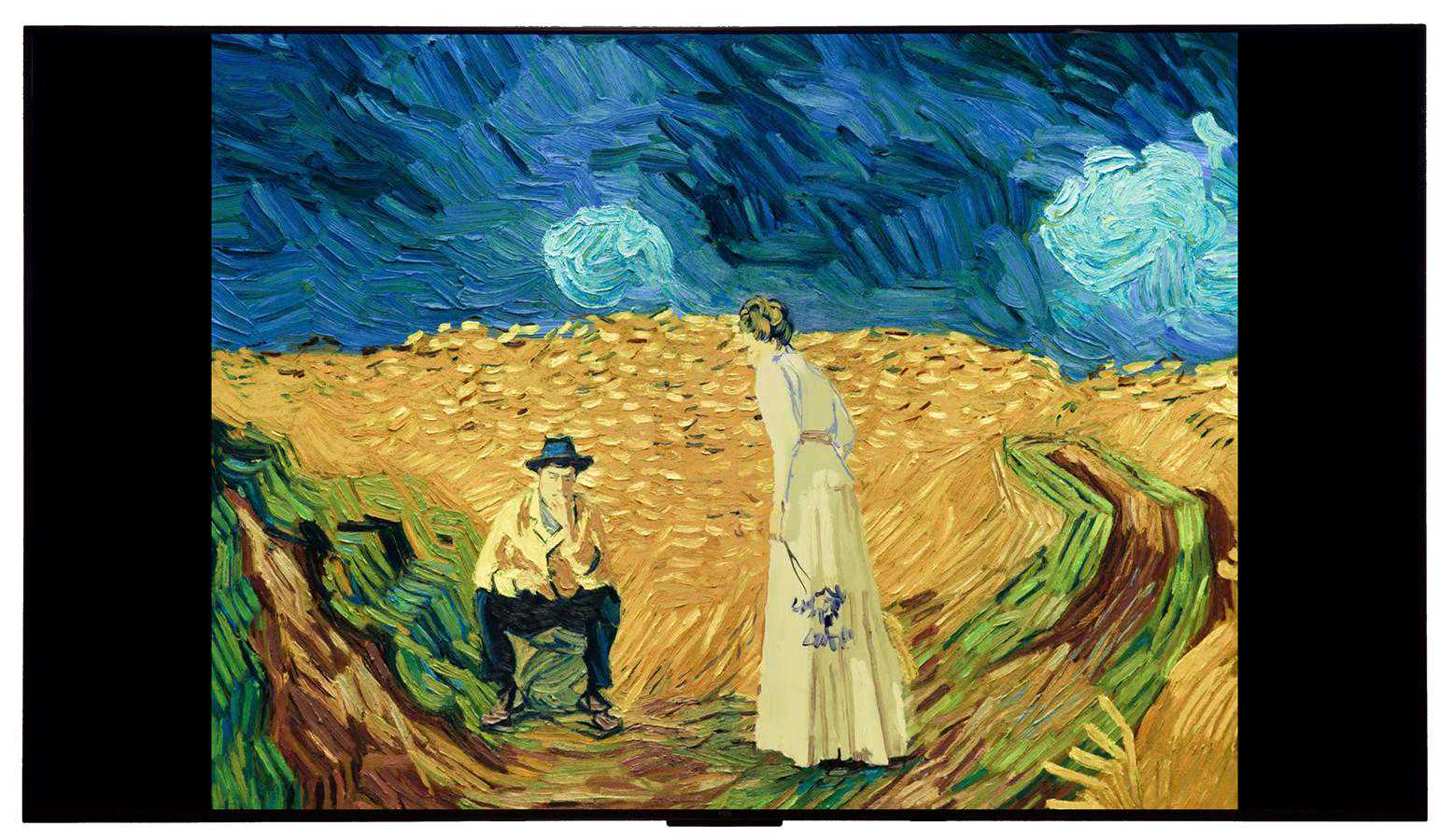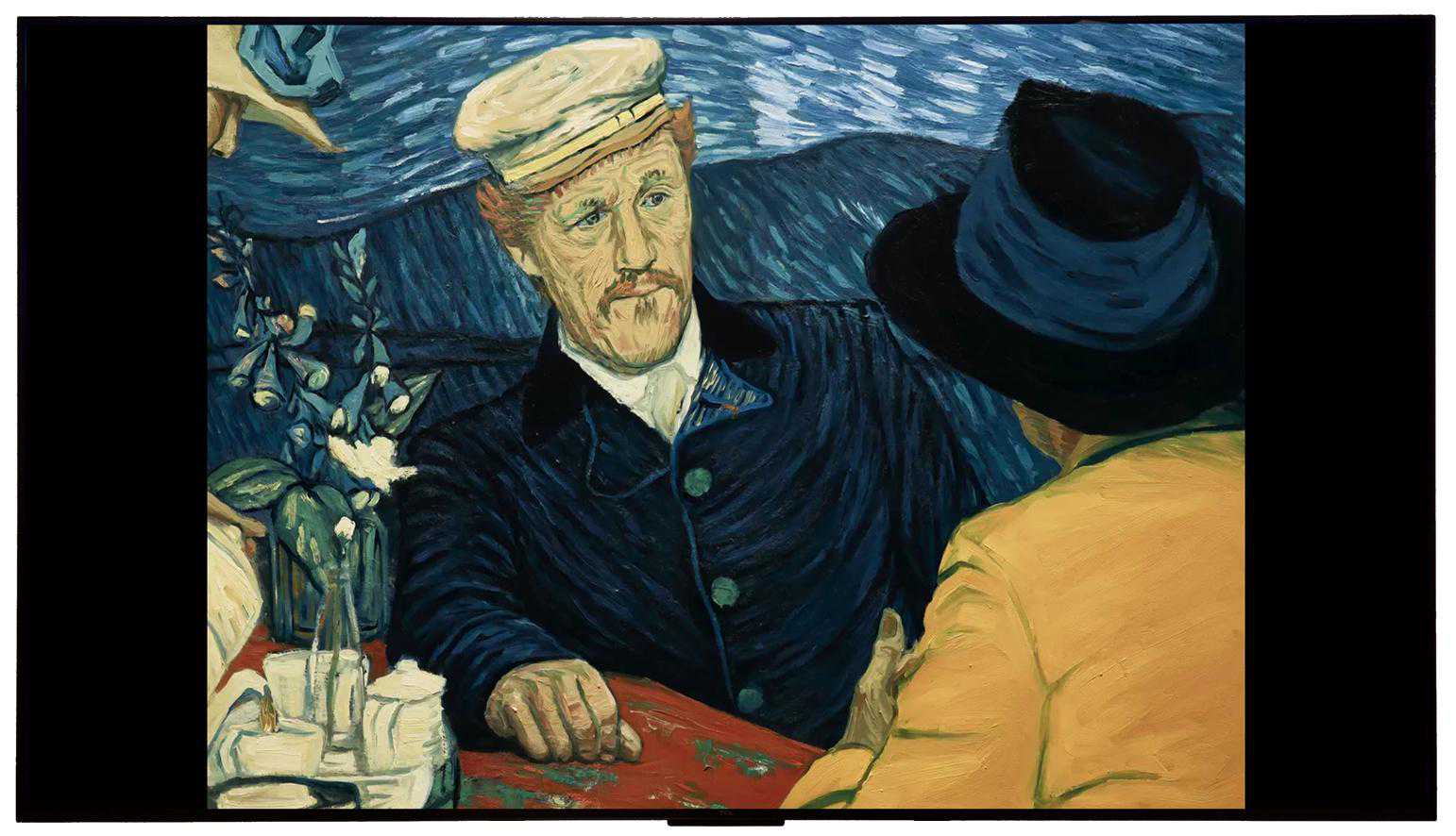 接着进入到最为重要的画质展示环节,我用TCLQ10H电视播放了一些高清片源,并截取比较具有代表性的片段进行展示。下图是电影《至爱梵高·星空之谜》的片段,据说这部电影中有一百多位画家参与,手绘了65000张油画。所以说从这部电影中随意截取一帧,都是油画的质感,甚至可以拿来当做壁纸。