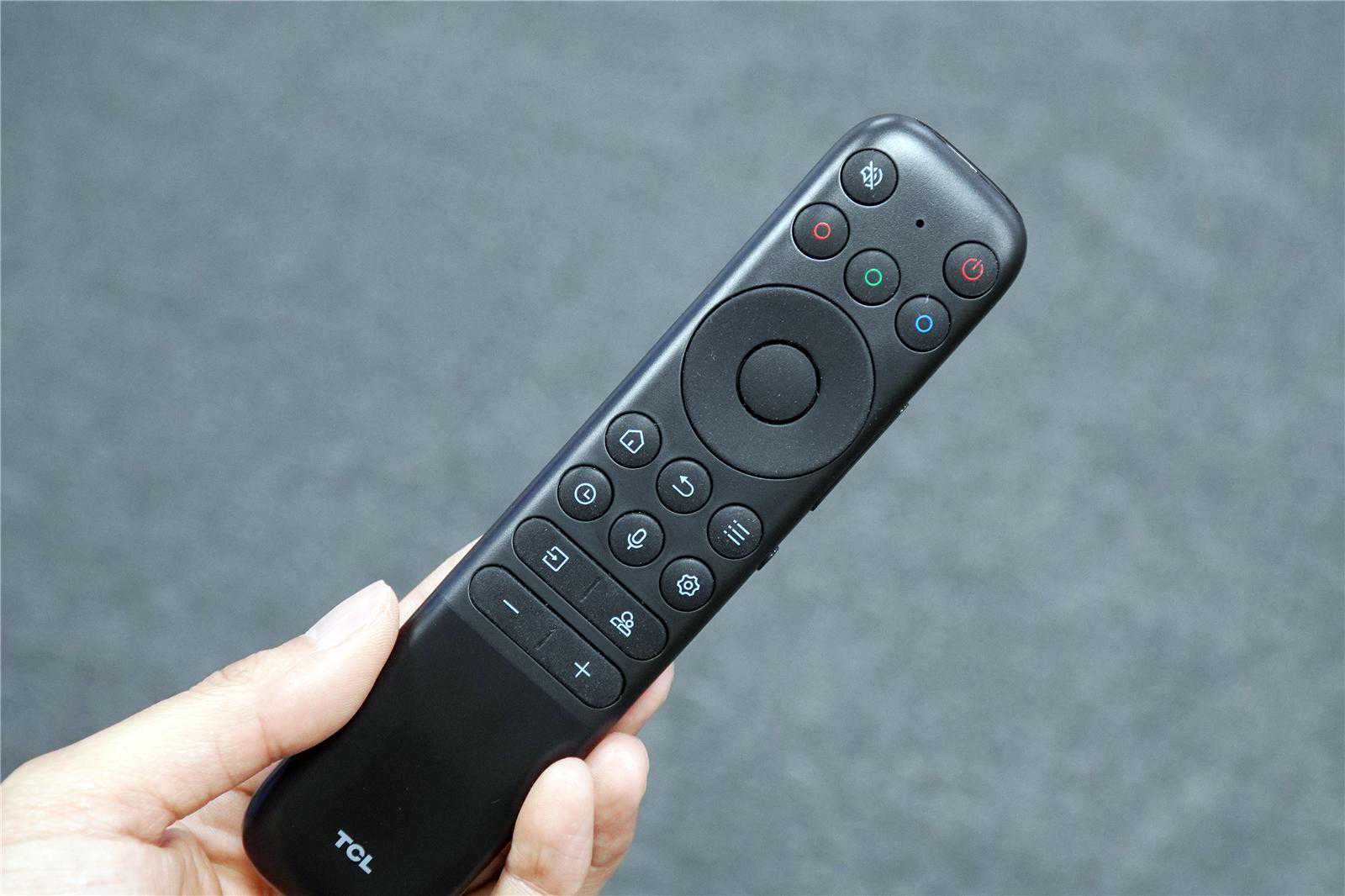 说到遥控器,这里也必须多讲几句,TCLQ10H电视的遥控器非常有特色。现如今的好多品牌都在给遥控器做减法,而TCL更是另辟蹊径在遥控器上设计了很有意思的三枚彩色按键。