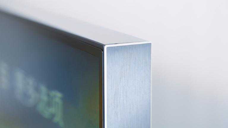 我这款选的55英寸的,大小上我觉得适合大多数100平米左右户型的客厅。这里要奉劝大家选电视还是不要一味的求大,要以自己客厅面积和电视到沙发的视距而定。电视的正面采用的是无边框设计,开机没有黑边,屏占比超高。边框侧面采用金属拉丝工艺,质感高级,背面是简约的金属背板,能感觉出用料的用心和做工的细致,大气上档次,能很好的融入到现代简约时尚的家装风格中。