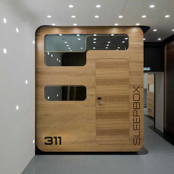 严格说来,Sleepbox(睡眠盒子)算不上胶囊旅馆,因为它没有附设的卫生间、浴室和WIFI,它的诞生,更像是为机场量身打造的。