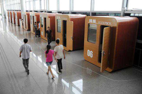 尽管在Sleepbox的官网上找不到信息,但类似的睡眠小屋已经被放进了西安咸阳国际机场T3航站楼,并且有了一个应景的中文名字——蜂巢。在携程等预订网站上看到,3小时起订的蜂巢最低价格约在100元,如果住一个整晚,大约需要200多元,非常适合转机和赶早班机的人。