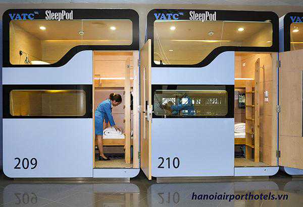 坐落在越南河内内牌国际机场的1号航站楼内,前台24小时服务,价格大约30美元每晚。每个小屋都配了单人床和必要的办公设施,还有迷你吧和免费小吃,面积大约4平米。需要提醒的是,卫生间为公用设施。