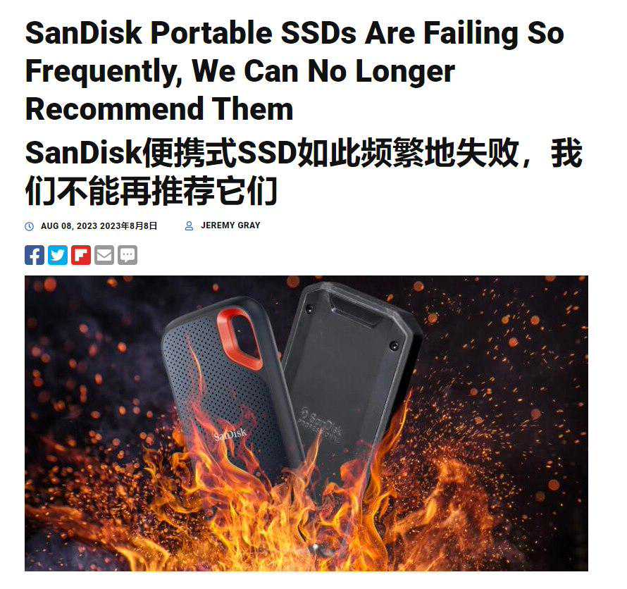 西部数据此前已承认了闪迪Extreme移动硬盘存在突然擦除数据、无法读取等各种问题,表示该问题出现在2022年底量产的一批硬盘上,主要影响4TB型号。随后,官方发布固件更新,以解决其闪迪Extreme和ExtremeProSSD的可靠性问题。