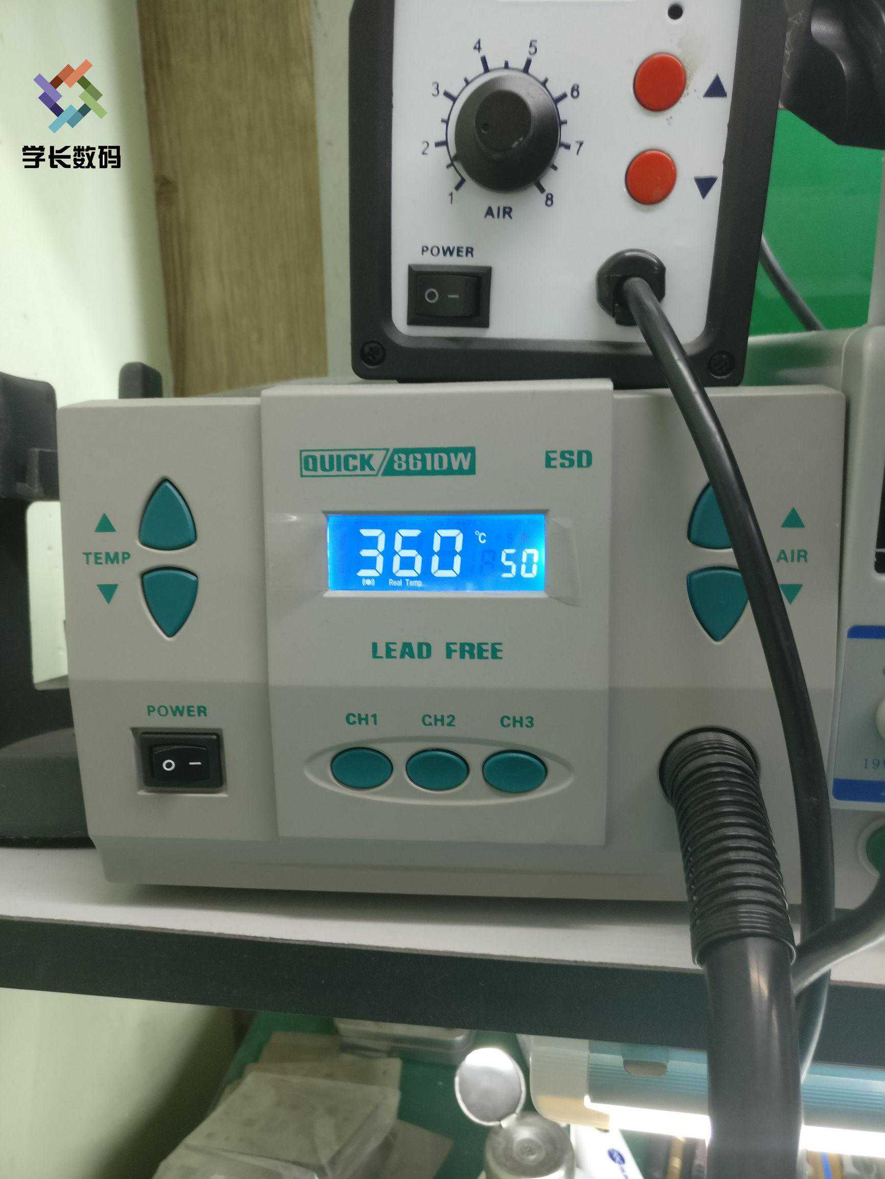 第六步:清理焊盘上的中温锡风枪调到300°风速50底盘再加些焊油,配合吸锡带快速清理掉底盘上的中温锡。