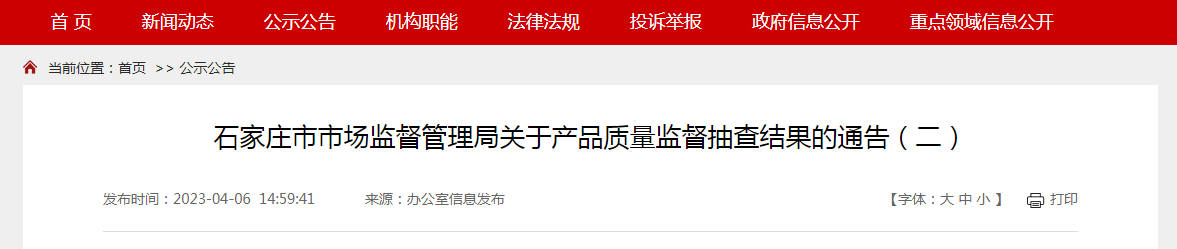 《通告》中不合格样品检出批次等数据仅反映此次抽查涉及样品的情况,不作为石家庄市市场此类产品质量状况评价依据。对于监督抽查中发现的问题,该局已移交相关县(市、区)市场监管部门依法处理。