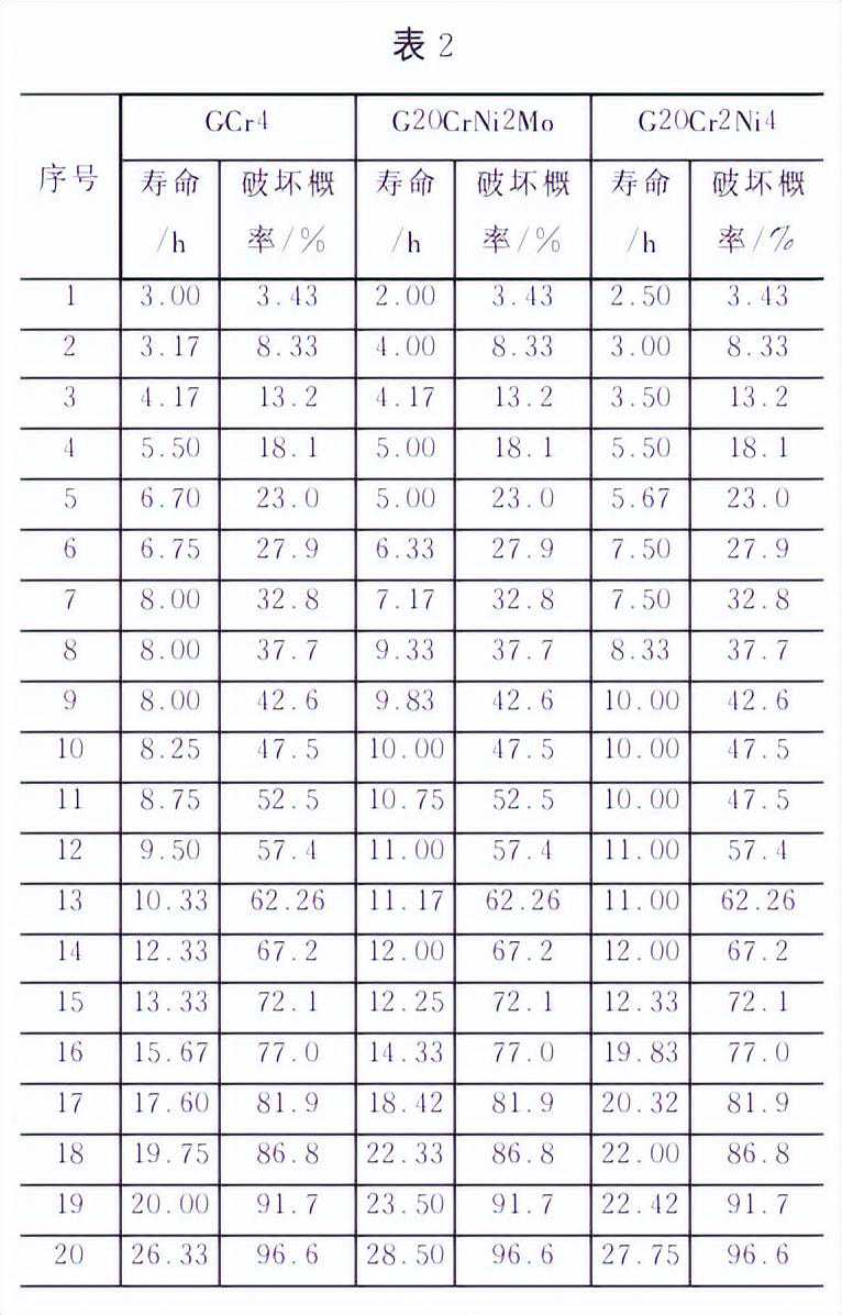 综合而论,这三种材料的接触疲劳寿命基本相当。单从接触疲劳寿命的试验结果来看,GCr4钢可以代替G20CrNi2Mo和G20Cr2Ni4钢生产部分轧机轴承和其他耐冲击载荷的轴承。能否大量应用,还有待实践证明。