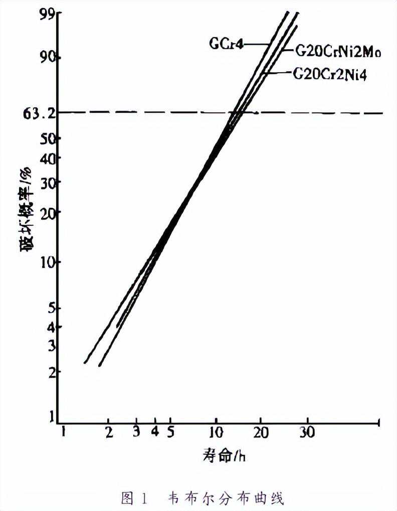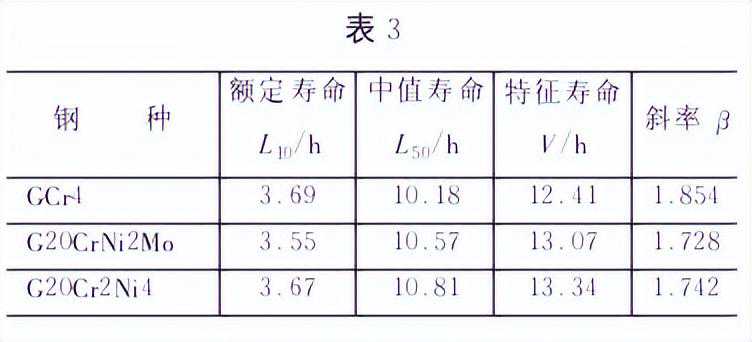 从表3和韦布尔分布曲线可以看出。在本文所述的试验条件下,三种材料的L10t寿命相当。
