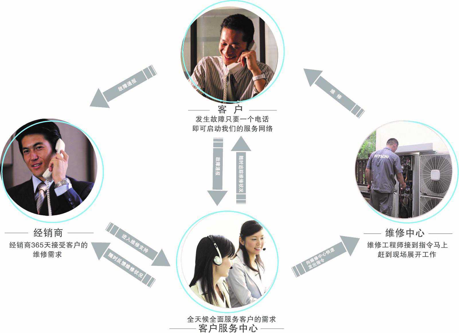 据了解,作为中央空调行业的领军企业,为服务好广大用户,日立已经形成了一整套完整的客服体系。用户只需要拨打日立官方的客服热线,约定好上门时间即可。客服热线接到用户报修信息后,会将与用户约定好的上门时间告知并派单至当地分公司,然后由当地分公司直接通知管辖该片区的服务网点安排维修人员与用户联系,核实产品、故障现象等信息后上门服务。从400接到用户电话,到具体指定的维修人员与用户取得联系,全程要求在1个小时内完成。