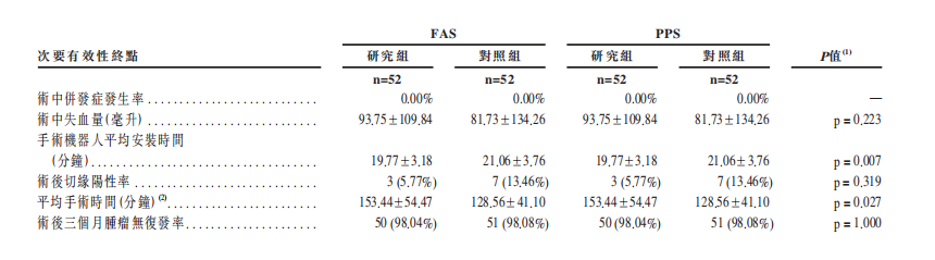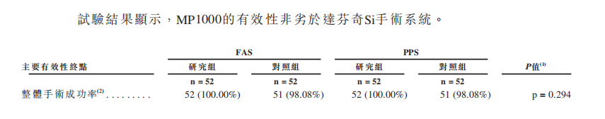 值得一提的是,从各项指标来看,与达芬奇Si系统相比,MP1000的临床表现并不劣于前者。